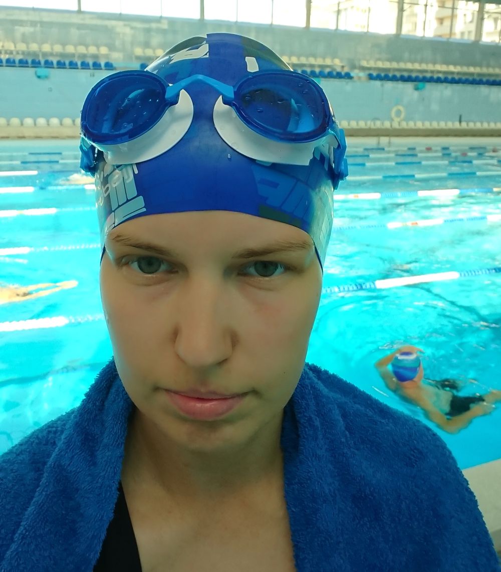 Сегодня с подопечными плавали упражнение с закрытыми глазами. Очень интересный опыт, так как полностью теряется пространственное ощущение и нужно контролировать свое продвижение, считать гребки, чтобы четко остановиться и, конечно, стараться не вращаться в дорожках. С последним было особо сложновато, поэтому врезались в дорожку примерно на каждый пятый гребок.